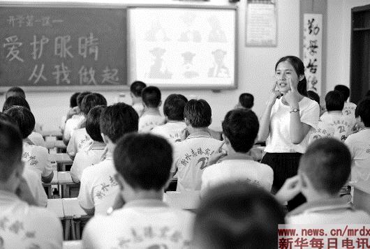 ▲9月1日,衡水志臻实验中学老师指导学生做眼保健操。新学期伊始,河北省衡水志臻实验中学组织学生开展“开学第一课 从保护眼睛开始”主题教育活动,引导孩子们从小养成爱护眼睛的好习惯。新华社记者朱旭东摄