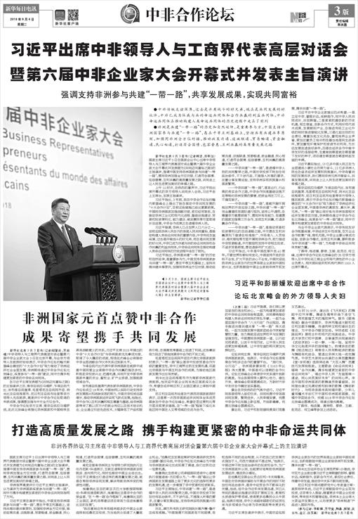 习近平出席中非领导人与工商界代表高层对话会 暨第六届中非企业家大会开幕式并发表主旨演讲 强调支持非洲参与共建“一带一路”,共享发展成果,实现共同富裕