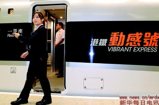9月22日,“动感号”列车在香港西九龙站等候试乘。