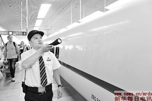 ▲9月23日,福州动车段随车机械师在福州至香港G3001次高铁发车前检查动车组技术状态。当日8时25分,由福州始发至香港的G3001次高铁开通,列车经由莆田、泉州、厦门北、潮汕、深圳北5站,约5个半小时后到达香港西九龙站。