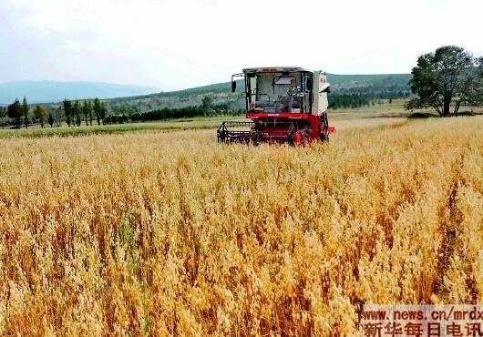 近日,河北省坝上地区尚义县的10万亩莜麦进入收获期,农民抢抓农时收获莜麦,农田里呈现一派繁忙景象。