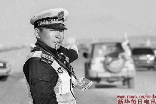 ▲10月4日,内蒙古阿拉善左旗交警大队的交警梁欢在阿拉善英雄会场地外围执勤。国庆期间,沙漠越野嘉年华——第十三届越野e族阿拉善英雄会在内蒙古自治区阿拉善盟腾格里沙漠举行。阿拉善左旗交警大队交警坚守岗位,保障交通安全。