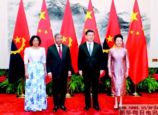 | 10月9日,国家主席习近平在北京人民大会堂同安哥拉总统洛伦索举行会谈。这是习近平和夫人彭丽媛同洛伦索夫妇合影。新华社记者谢环驰摄