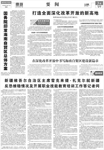 在深化改革开放中书写海南自贸区建设新篇章 |