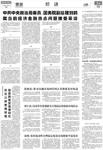 新华社北京10月19日电(记者刘慧)10月19日,中国证监会党委书记、主席刘士余就市场关注的重点问题接受新华社记者采访。