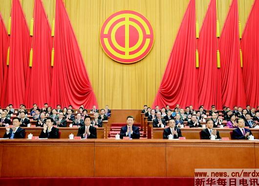 10月22日,中国工会第十七次全国代表大会在北京人民大会堂开幕。习近平、李克强、栗战书、汪洋、王沪宁、赵乐际、韩正等在主席台就座,祝贺大会召开。