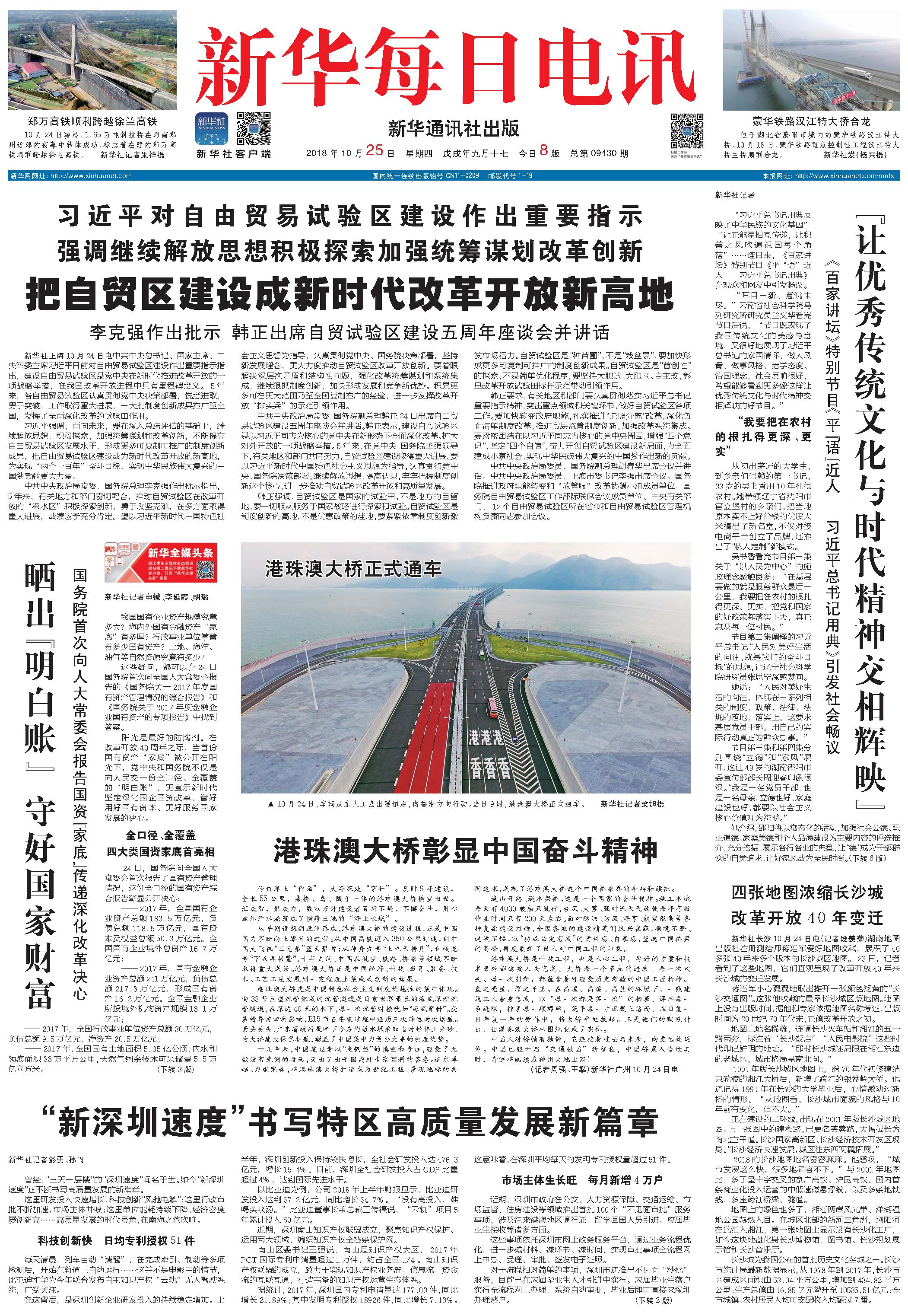 “新深圳速度”书写特区高质量发展新篇章 (2018年10月25日) |