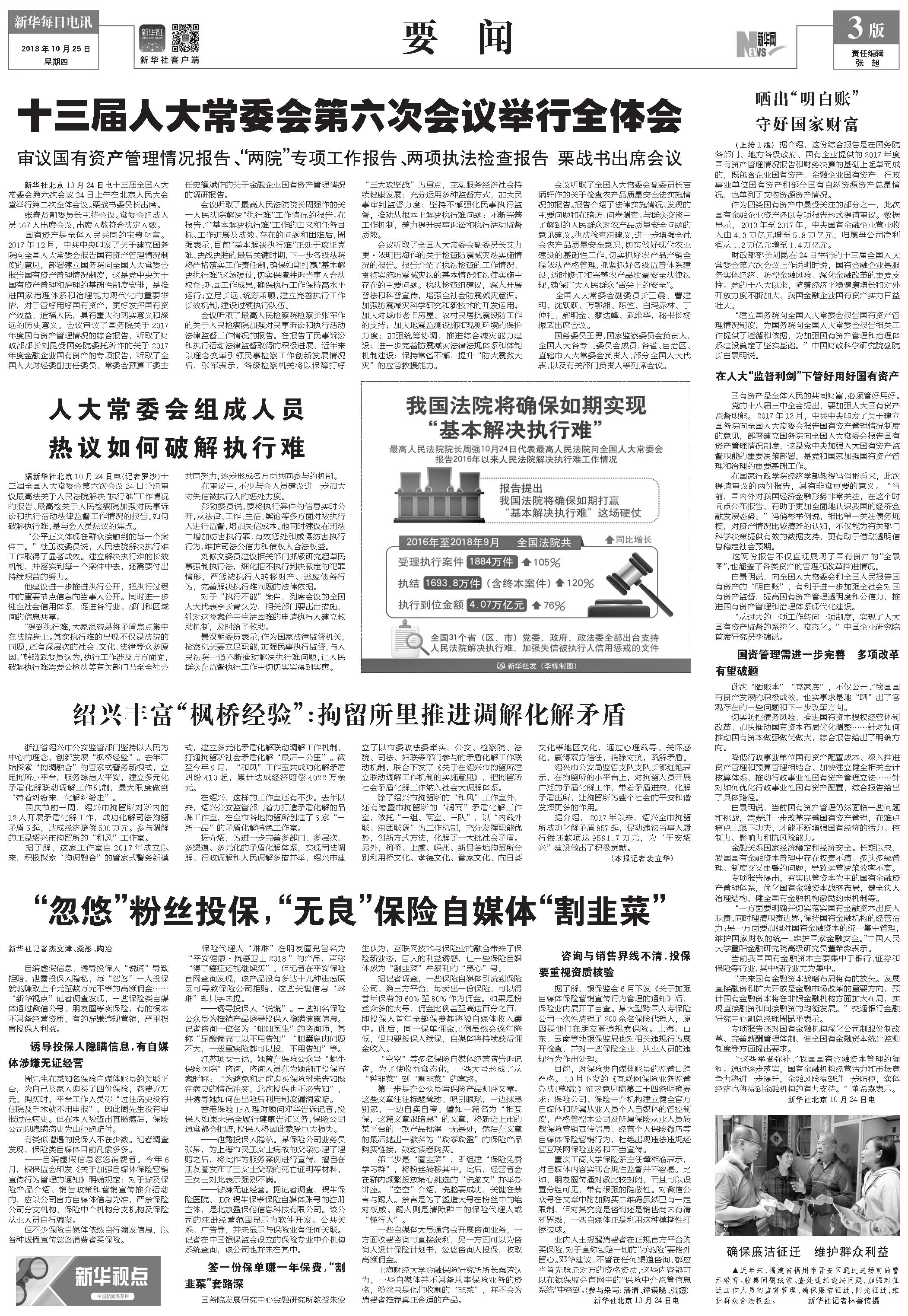 十三届人大常委会第六次会议举行全体会