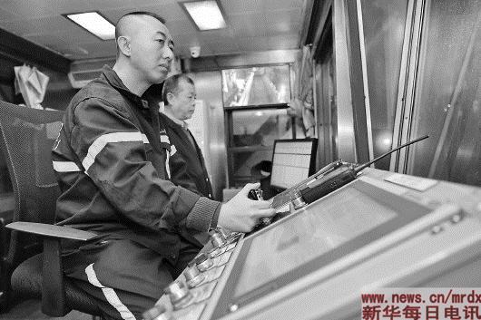 工作人员在大秦铁路塔山专运线装车点的集控室内操作煤炭装载设备(10月23日摄)。