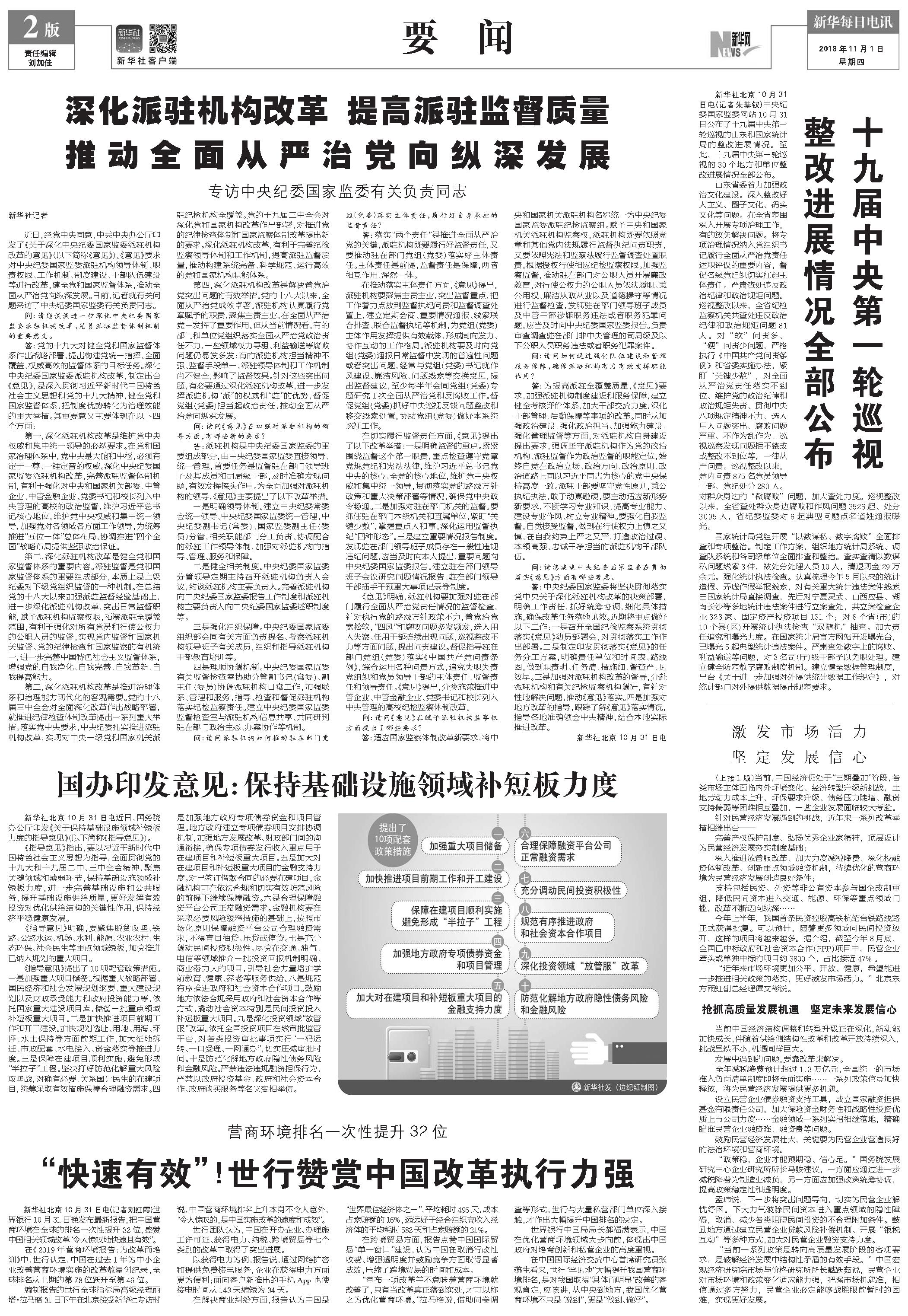 十九届中央第一轮巡视整改进展情况全部公布