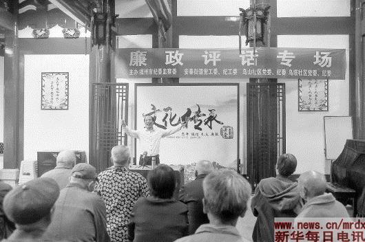 “廉政文化进社区的尝试,充分利用了福州评话的特点——地方特色浓郁、贴近群众、通俗易懂、形象生动,将传统曲艺与廉政教育相结合,发挥老年人在家庭廉洁监督、廉洁文化建设中的重要作用,营造反腐倡廉的良好家庭氛围和社会环境,”安泰街道党工委书记陈靖说。
