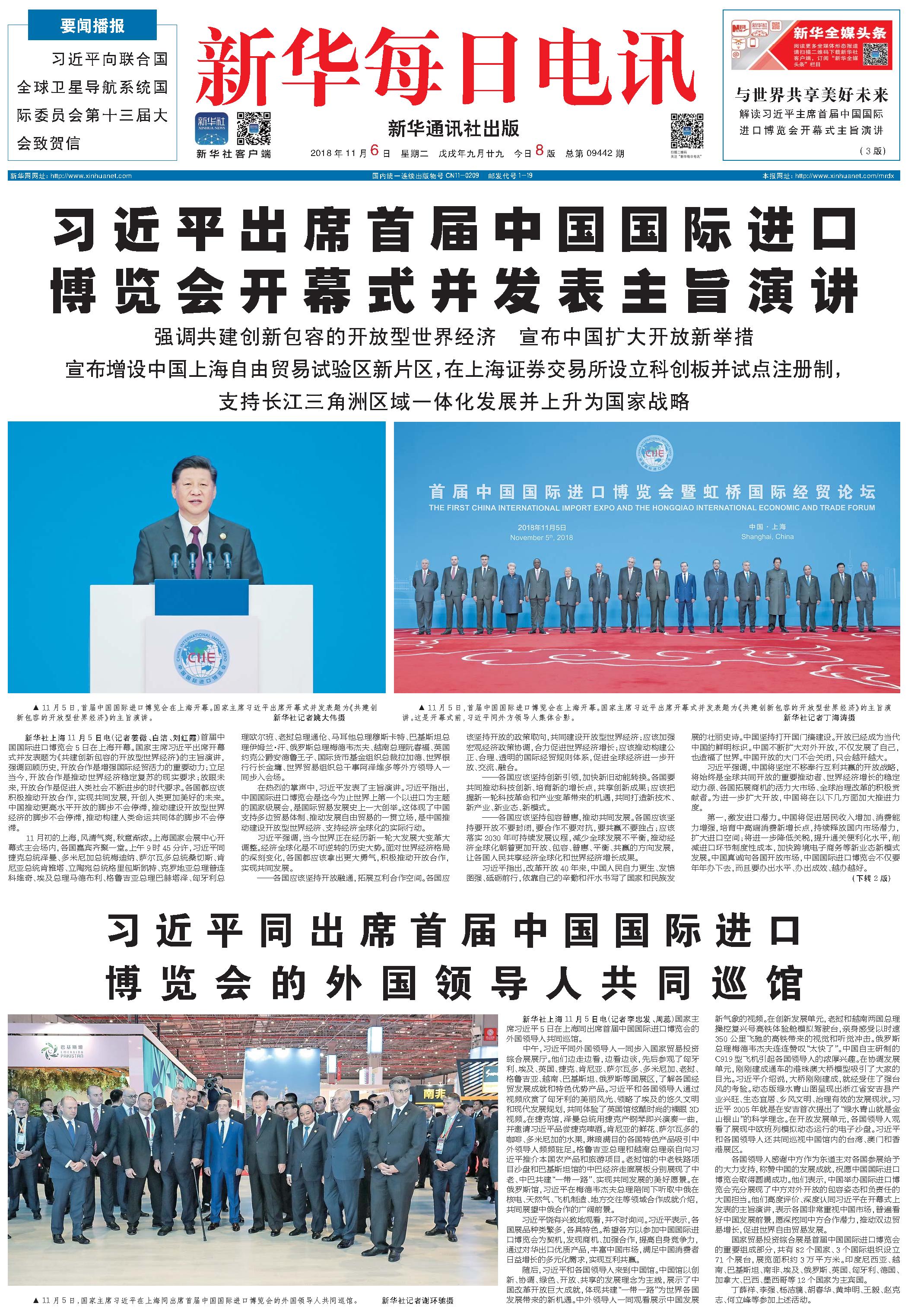 习近平出席首届中国国际进口博览会开幕式并发表主旨演讲