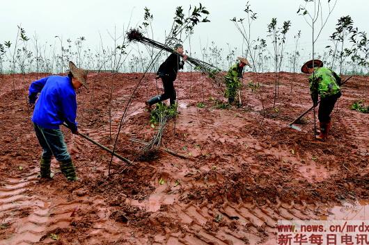 ▲村民在福州市晋安区日溪乡汶石村被拆除的工厂原址上种树。新华社记者张国俊摄