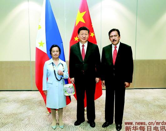11月21日,国家主席习近平在马尼拉会见菲律宾众议长阿罗约和参议长索托。 新华社记者庞兴雷摄