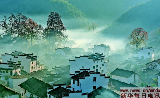 11月24日,江西省婺源县大彰山乡程村晨景如画。 新华社发(胡敦煌摄)