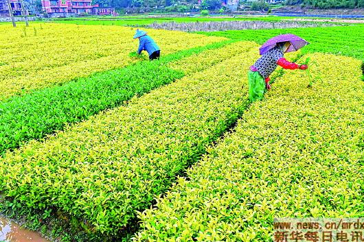 11月26日,福建连江县祠台村村民在管理茶苗。该村党支部加强廉政建设和组织建设,引导村民发展特色农业,助力脱贫致富。