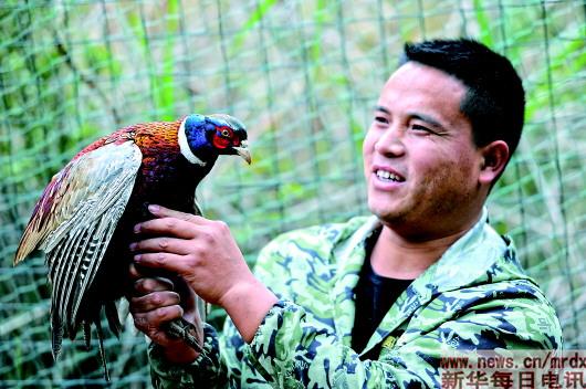 今年30岁的姚林2011年大学毕业后回到老家贵州省铜仁市玉屏侗族自治县田坪镇彰寨村,租下70多亩山林,开始养殖七彩野山鸡。养殖初期,由于缺乏技术,姚林投入6万多元养殖的700羽野山鸡被冻死了500多羽,几乎面临破产。但他并未退却,通过走访多个野山鸡养殖场,利用互联网取经、学习,姚林逐步掌握了养殖技巧。