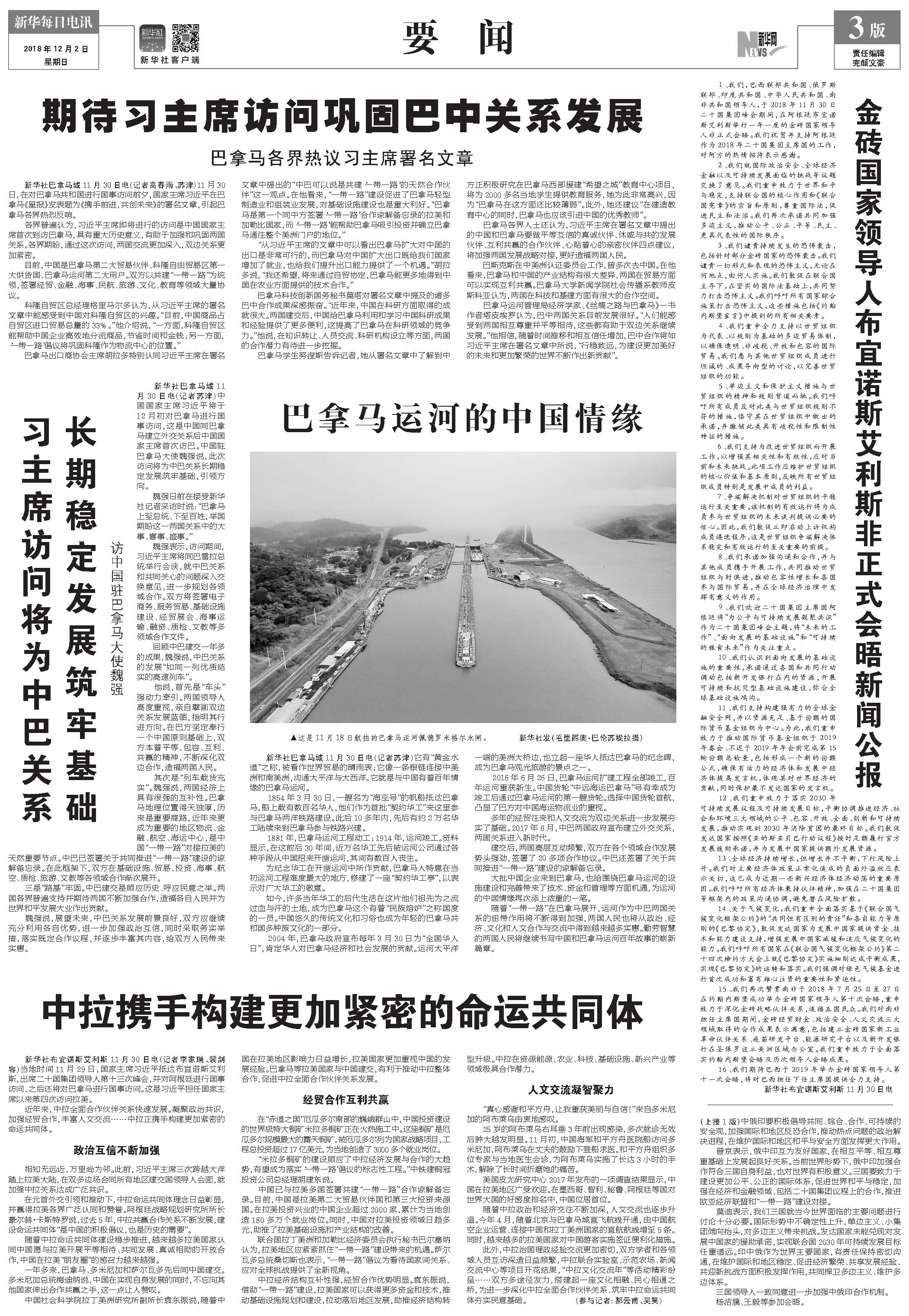 金砖国家领导人布宜诺斯艾利斯非正式会晤新闻公报