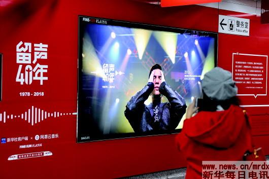 新华社北京12月3日电(记者吉宁、商意盈)在庆祝改革开放40周年之际,12月3日,新华社客户端联合网易云音乐在北京地铁4号线宣武门站和杭州地铁1号线定安路站,举办主题为“留声40年:那些改变你我的故事”音乐主题影像展。