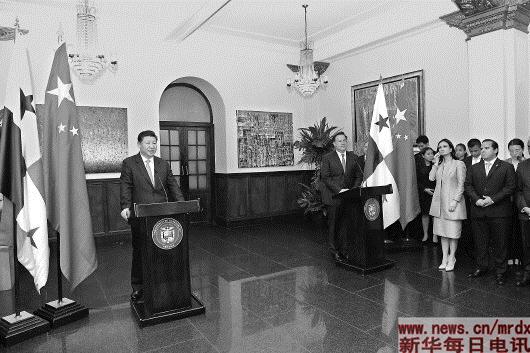 习近平指出,中巴建交为两国各领域合作开辟了广阔前景。两国经贸合作从来没有像今天这样丰富,双方企业界的联系从来没有像今天这样紧密。两国企业界是中巴合作的主力军,双方要抓住良好机遇,努力扩大合作。中国真诚向各国开放市场,欢迎包括巴拿马在内的世界各国企业家到中国投资兴业,也鼓励中国企业到巴拿马开拓发展,实现共同发展繁荣。两国企业家应该担起社会责任,生意做到哪里就要在哪里播下友好的种子,项目建在哪里就要在哪里树起友谊的丰碑。希望两国企业家开拓进取,开创中巴合作更加美好的未来。