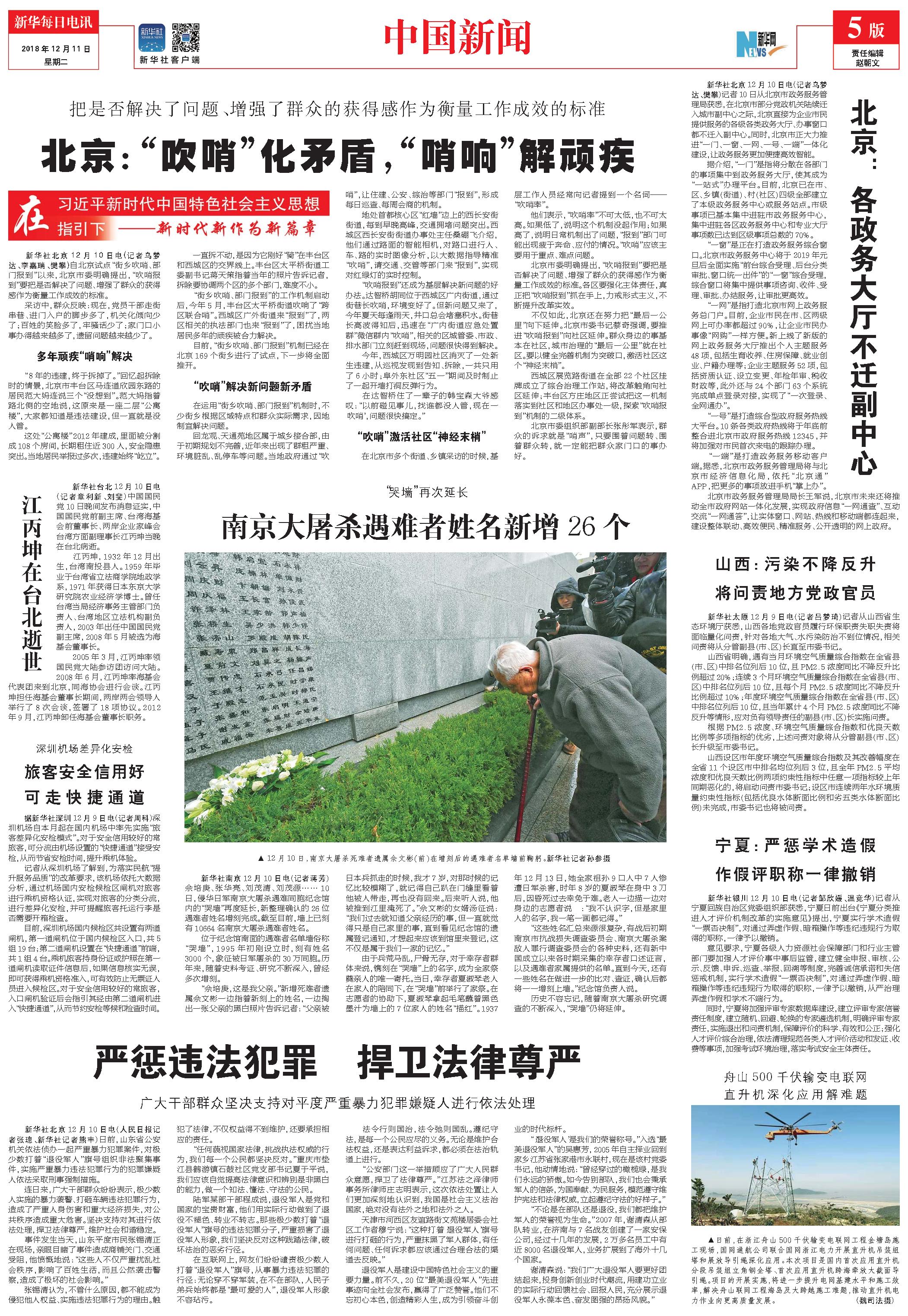 北京:“吹哨”化矛盾,“哨响”解顽疾 (2018年12月11日) |