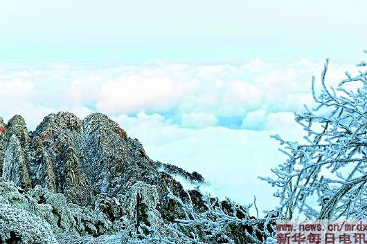 这是12月12日拍摄的雪后黄山。近日,安徽黄山风景区迎来降雪,雪花为山峦、树木披上银装,美如画卷。 新华社发(潘正光摄)