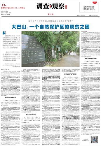 秦巴山片区是国家集中连片特困地区之一,大巴山国家级自然保护区所在地城口县是国家扶贫开发工作重点县,全县有8000多人尚未脱贫,其中六成以上是自然保护区内的居民。