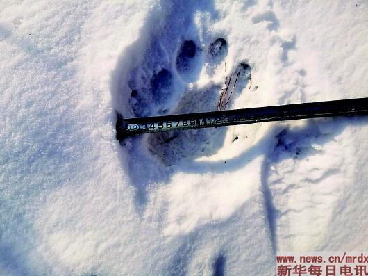 吉林省舒兰市山区发现的疑似野生东北虎的足迹(12月16日摄)。新华社发