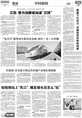 “复兴号”新型动车组首次亮相,明年1月5日开跑 |