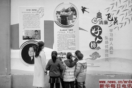 ▲12月19日,小学生在湖州市吴兴区飞英街道眠佛寺街观看好人榜的事迹介绍。新华社记者黄宗治摄