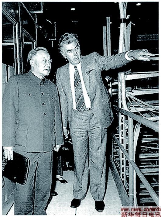 这是1978年6月16日,中国“两弹元勋”之一、著名核物理学家钱三强(左)在瑞士日内瓦的欧洲核子研究中心参观地下环形隧道的资料照片。新华社发 |