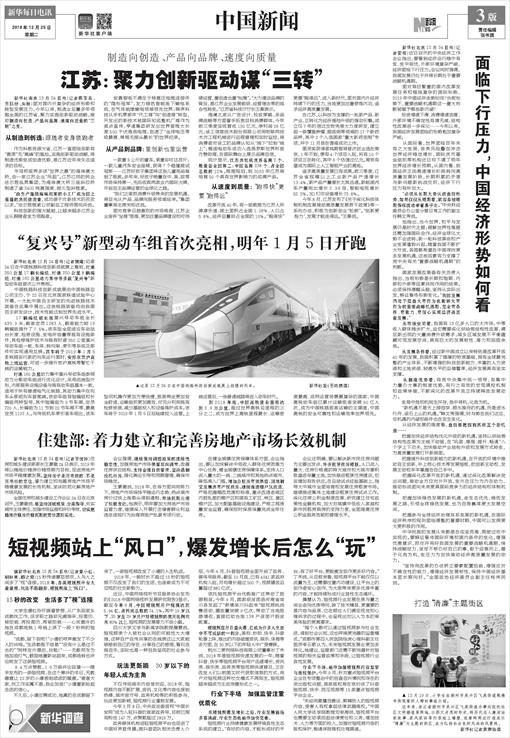 “复兴号”新型动车组首次亮相,明年1月5日开跑