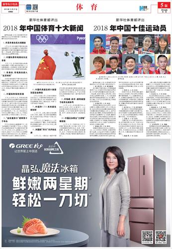 | ( 2018-12-27 ) 稿件来源: 新华每日电讯体 育 |