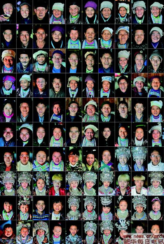 这是乌英苗寨100名村民的肖像,他们中间最大的94岁,最小的3岁(拼版照片,2017年11月至2018年12月摄)。