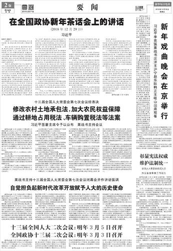 | ( 2018-12-30 ) 稿件来源:新华每日电讯 要 闻 |