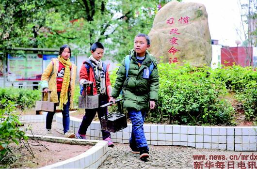 湖南省隆回县三阁司镇中学的学生提着木质“火提篮”来上学。近日,我国南方地区气温骤降。在湖南各地,人们拿出家中的传统取暖工具抵御寒冷。一件件充满民间智慧的取暖“神器”,唤起了不少人的童年记忆。