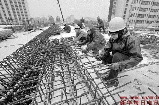 ▲12月30日,南昌市洪都大道快速化改造工程项目工地上,中铁四局五公司职工冒雪作业。新华社记者宋振平摄 |