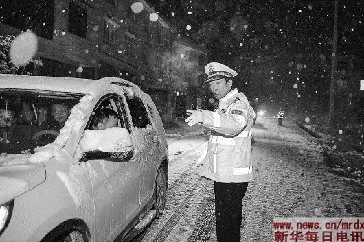 湖南各地交警全员上路进行疏导交通、执勤纠违、维持秩序等工作,力保道路安全畅通。30日上午8时许,记者在长沙城区看到,风雪中交警、环卫等部门坚守一线指挥交通、清扫积雪。