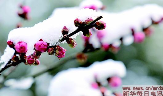 这是2018年12月31日在江苏苏州虎丘山景区拍摄的梅花。新年将至,我国多地迎来降雪。
