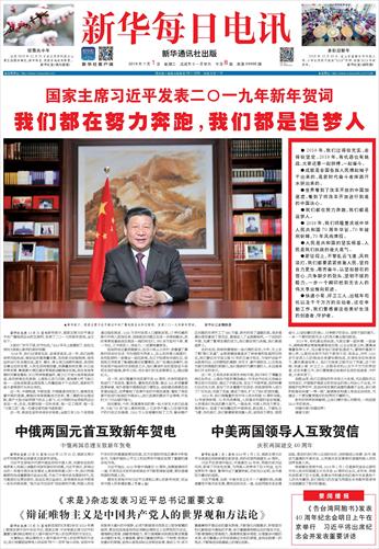 | ( 2019-01-01 ) 稿件来源:新华每日电讯 要 闻 |
