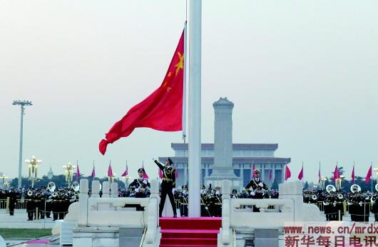 ▲1月1日晨,北京天安门广场举行隆重的升国旗仪式。   新华社发(唐召明摄)