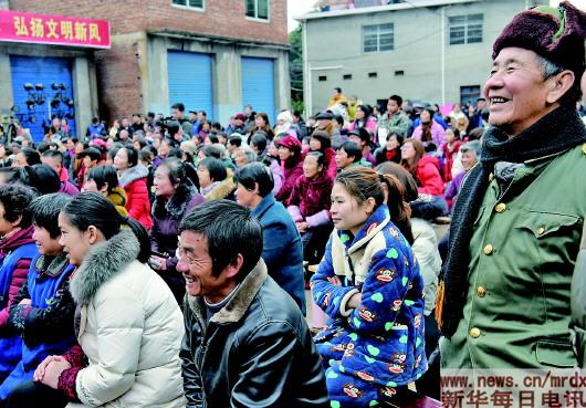 ▲洎阳街道湖腰畈村村民观看“古戏台讲堂”宣讲节目。新华社记者宋振平摄 |