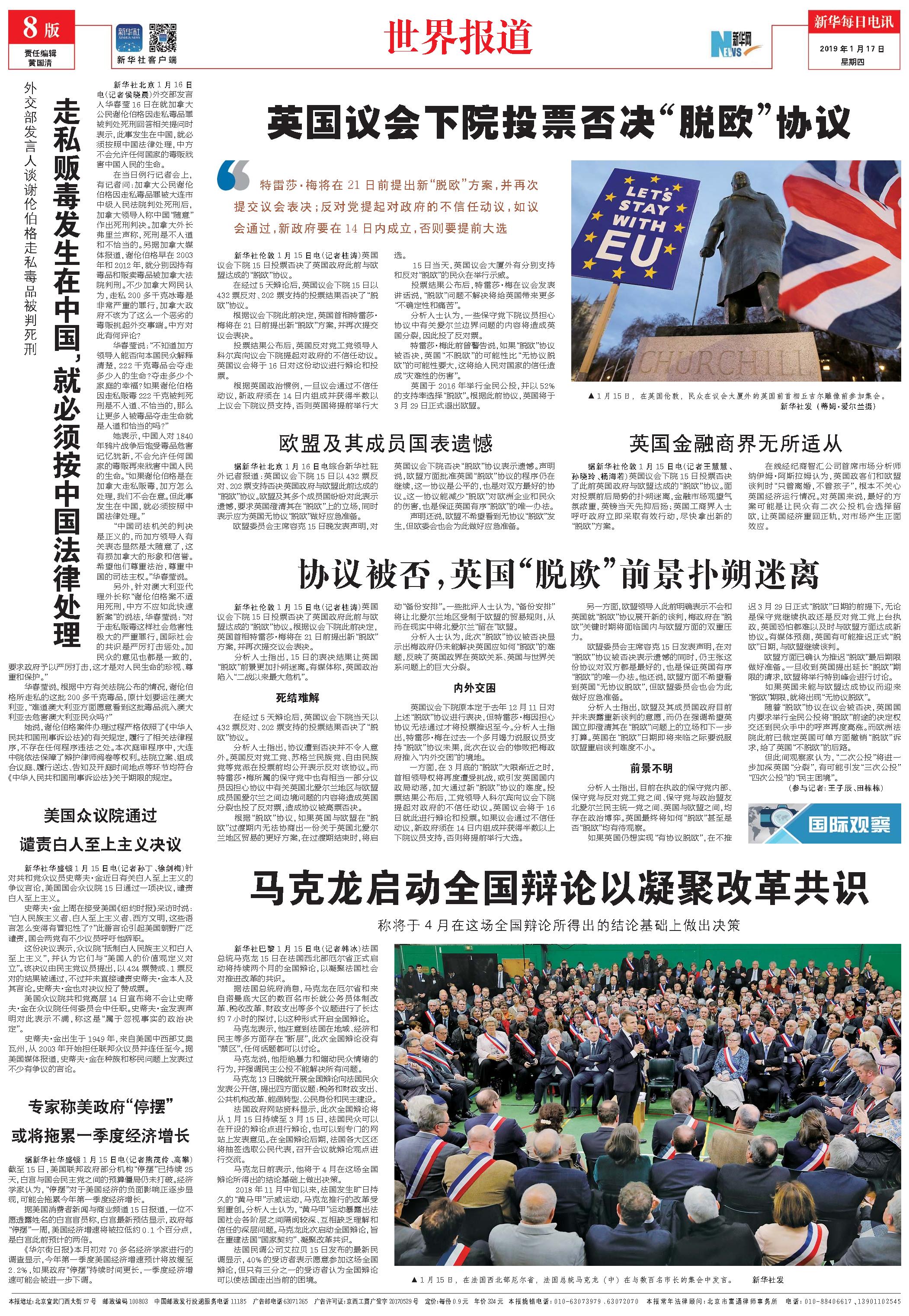 协议被否,英国“脱欧”前景扑朔迷离 (2019年01月17日) |
