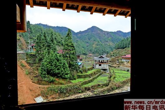| 从吴正怀新房窗口远眺,乌英苗寨不少村民也正在建新房。本报记者谢锐佳摄 |