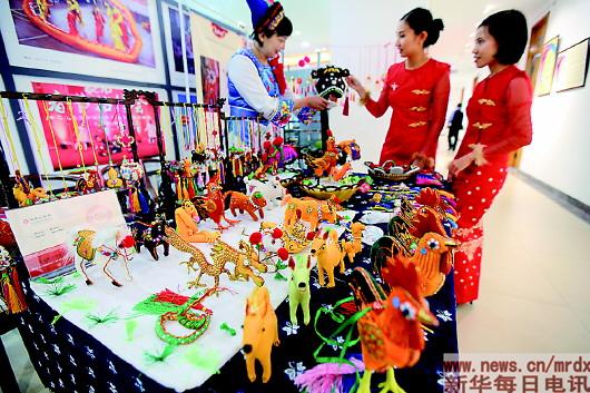 1月29日,在缅甸仰光,人们在中国云南省非物质文化遗产展暨欢乐春节图片展上参观。