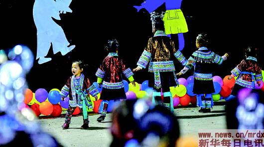 这是小朋友们在表演歌舞。2月6日,广西融水苗族自治县杆洞乡尧告村田边屯举办“春节联欢晚会”。