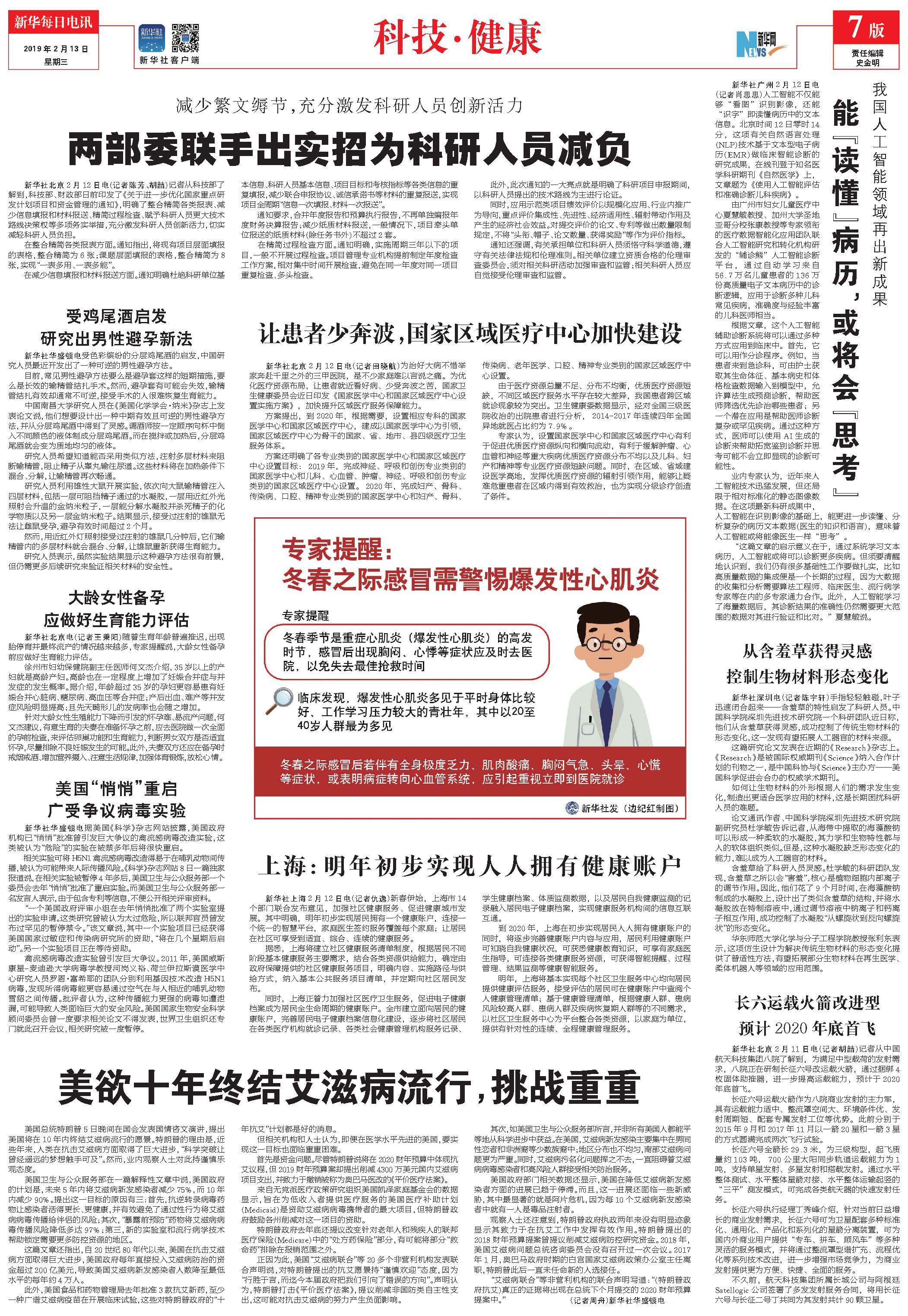 能“读懂”病历,或将会“思考” (2019年02月13日) |