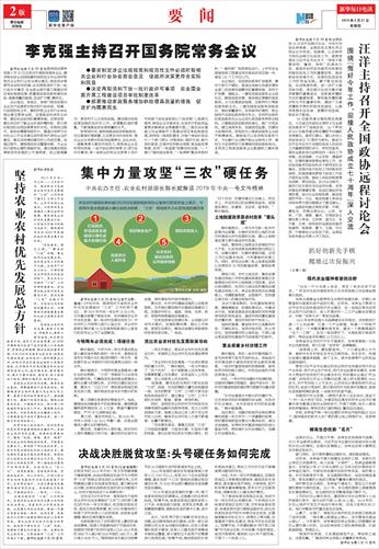 | ( 2019-02-21 ) 稿件来源:新华每日电讯 要 闻 |