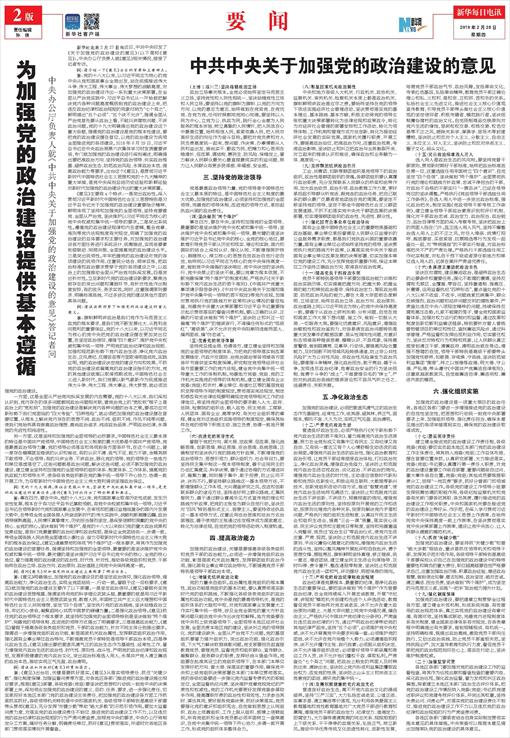 为加强党的政治建设提供基本遵循