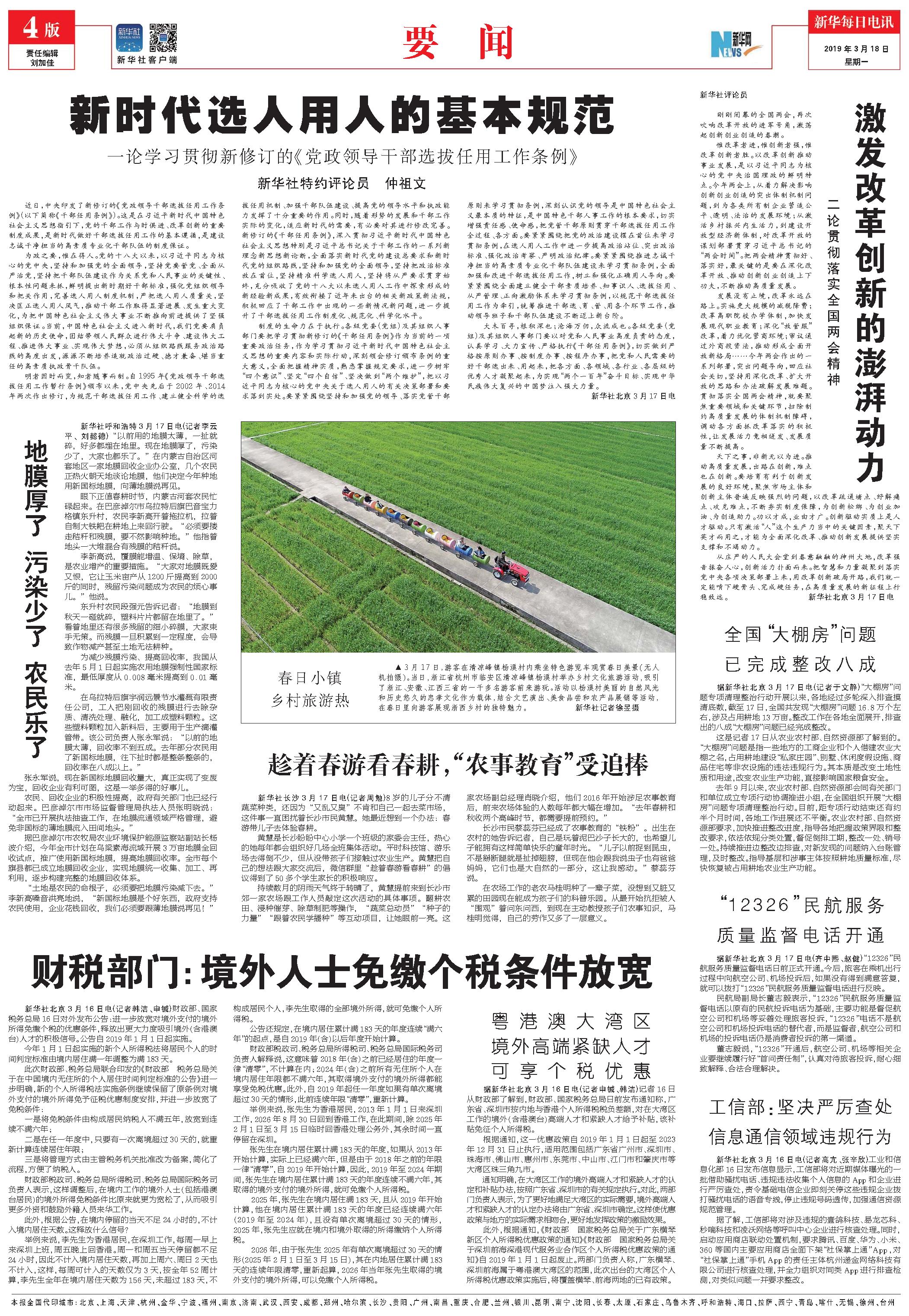 财税部门:境外人士免缴个税条件放宽 (2019年03月18日) |